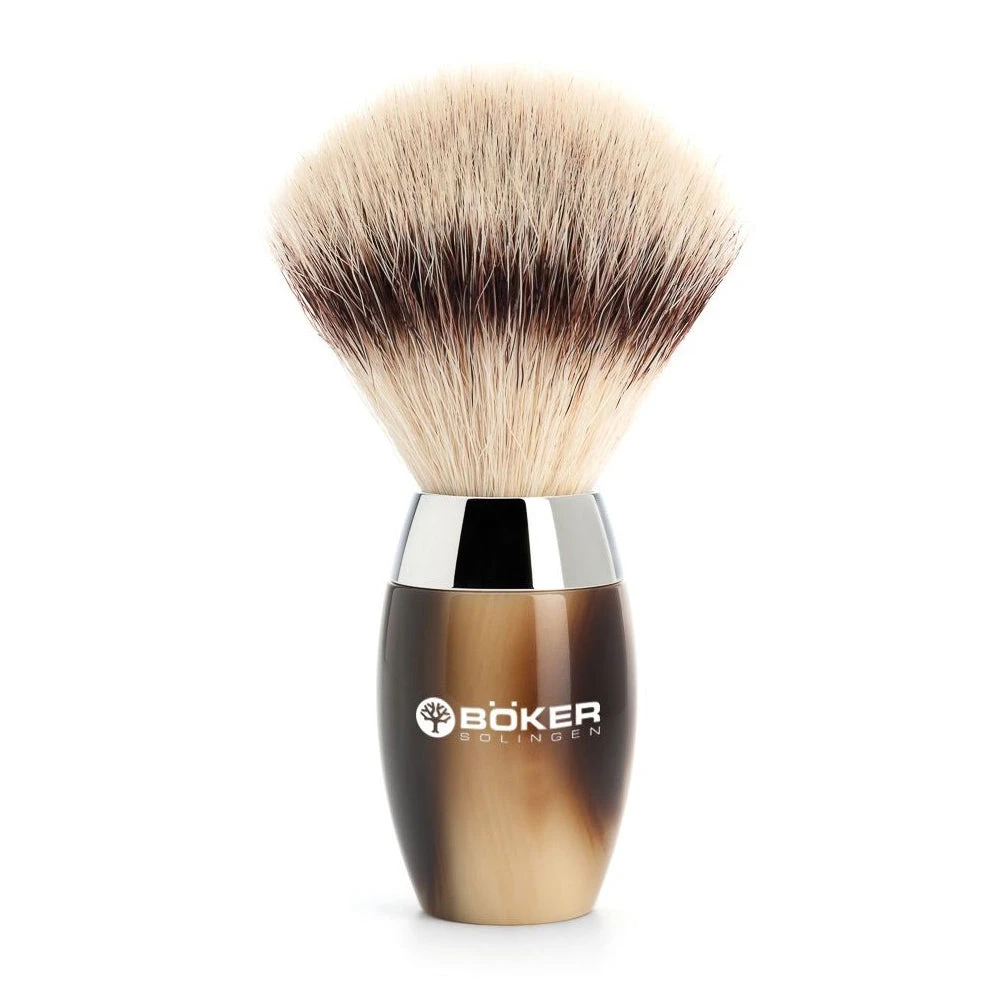 The Boker Modern Horn Shaving Brush helps you achieve a clean, close and comfortable shave every time. This high quality shaving brush, made in Germany with 100% vegan brown fiber bristles creates a rich lather with a small amount of shaving soap.