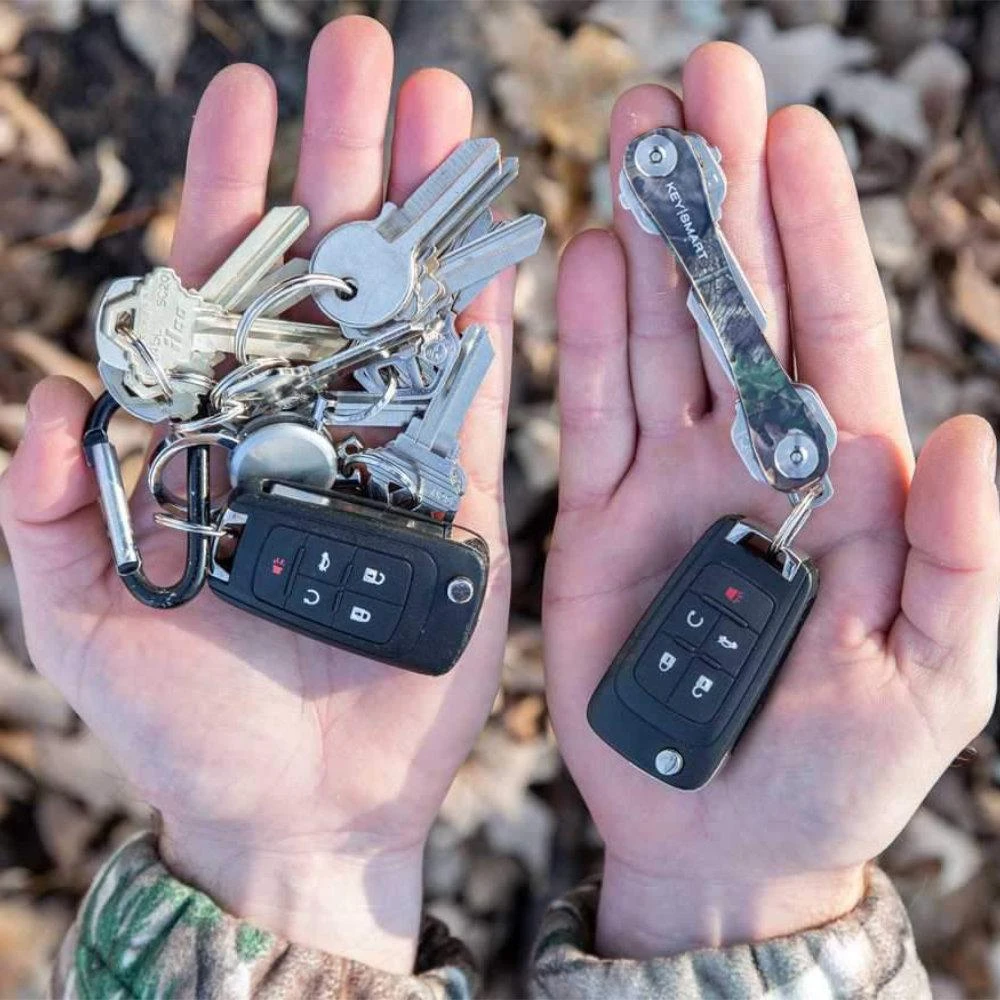 The KeySmart Original Compact Key Holder in Mossy Oak is a minimalist key holder that tames your unruly tangle of keys. Load 1 to 8 keys into the KeySmart Original, and eliminate bulky, noisy, sharp keys. Quickly and easily pull out just the key you need.