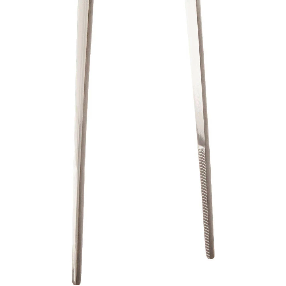 These Tweezer Tongs are made with solid 18/10 stainless steel, and have a grooved grip grooved tips on the inside for a secure hold.