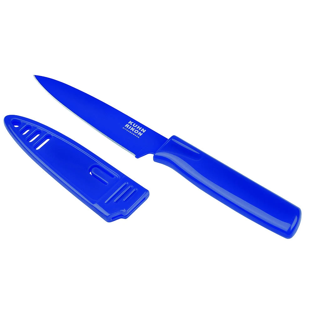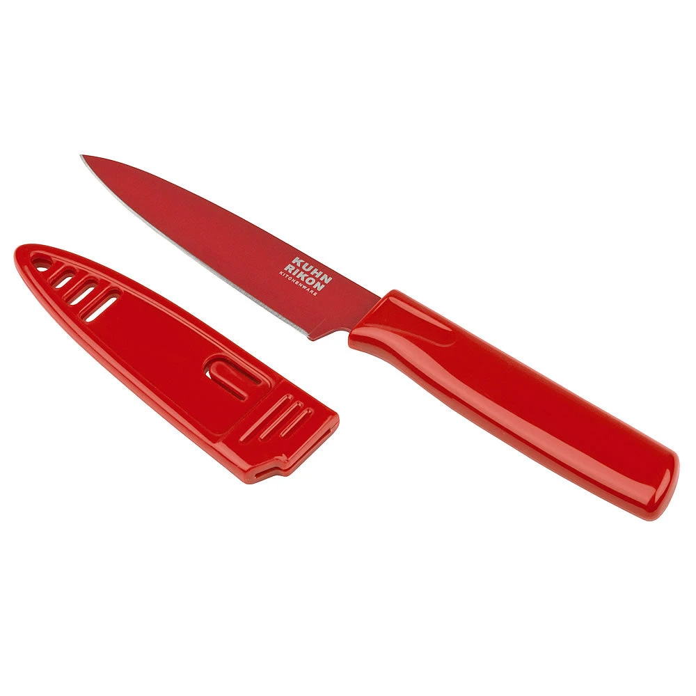 The 4-inch Colori Paring Knife by Kuhn Rikon is very versatile – making tasks such as peeling, coring, trimming, decorating and detail work easy. The small size of this paring knife provides complete control over the blade from heel to tip.