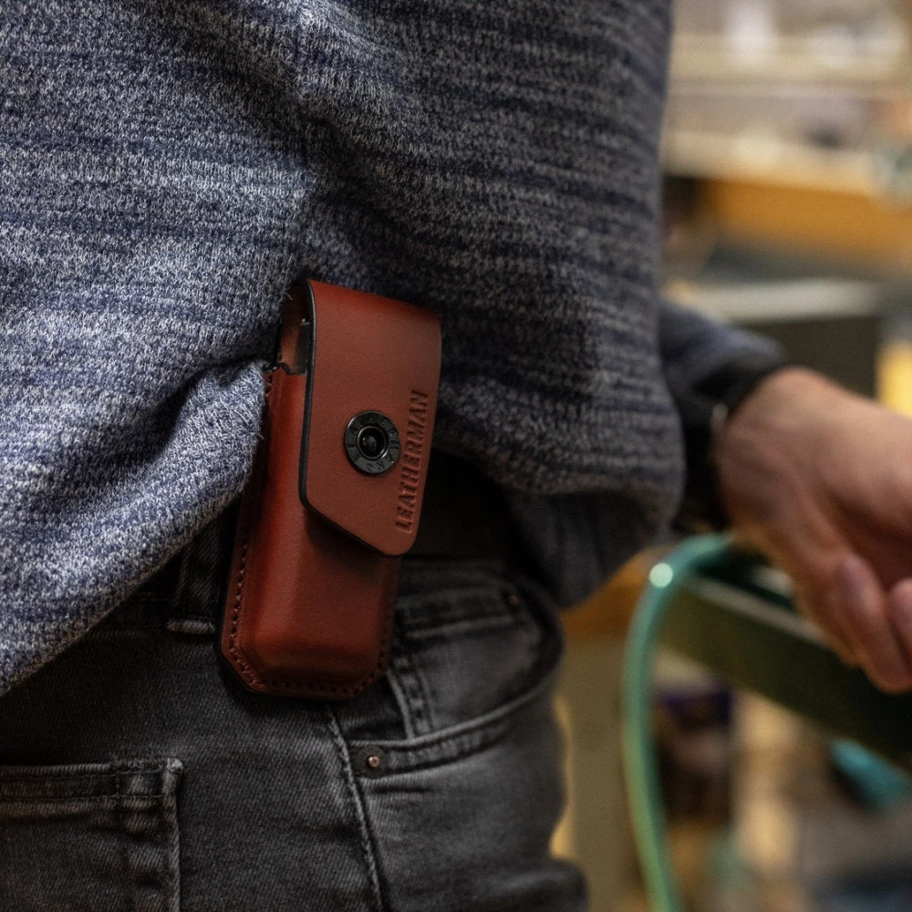The Leatherman Large Ainsworth Premium Leather Belt Sheath is the best Leatherman sheath yet. This premium sheath is made from vegetable tanned top grain drum-dyed cowhide. With use, this timeless sheath will age beautifully, developing character and withstanding all your adventures throw at it. A custom snap secures your tool for years of use. This premium sheath is backed by a 2 year Leatherman warranty.