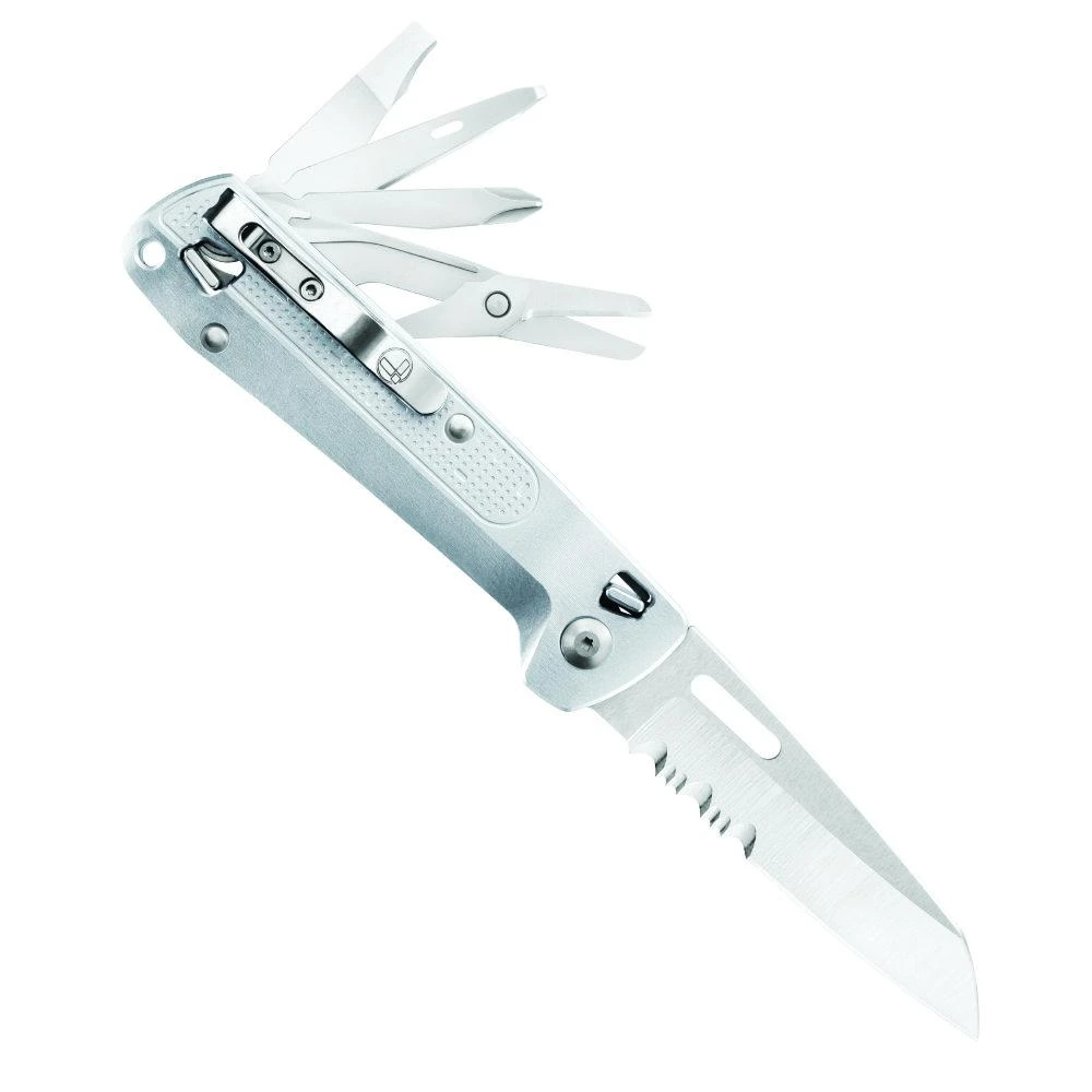 The Leatherman FREE K4x Multipurpose Knife is much more than a simple knife. This innovative multi-tool includes DIY essentials such as a combination serrated and straight knife blade, strong spring-action scissors, a robust pry tool and more. Each of the 9 tools built into this multi-tasker open smoothly with one hand, lock in the open position while in use, and snap back into place when the job is done.