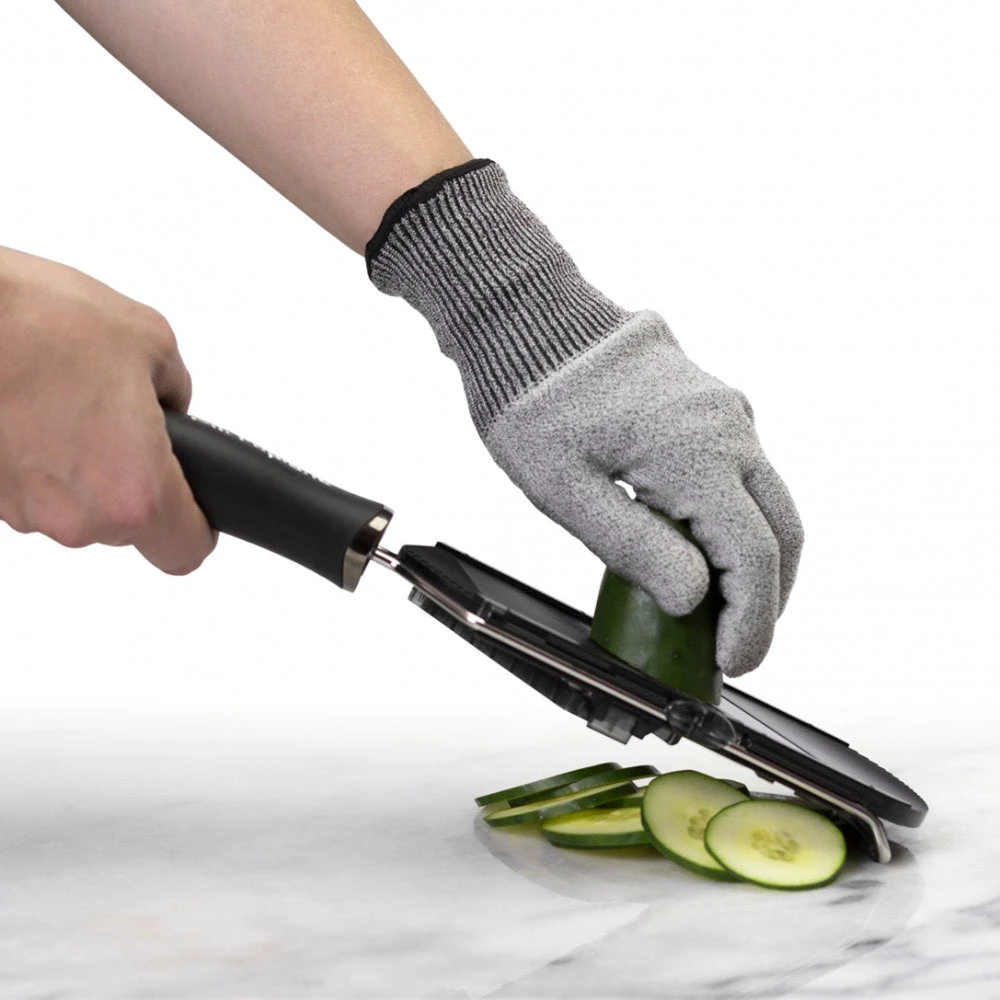 The Microplane Cut Resistant Glove is the perfect safeguard against cuts and scrapes from accidental contact with sharp blades such as graters, zesters, mandolins and knife blade edges.