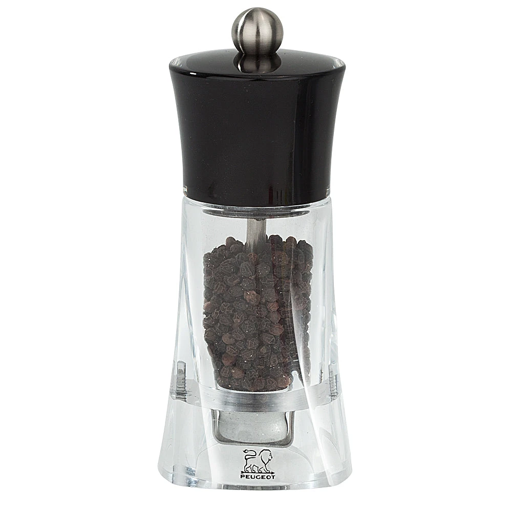 For best results, use peppercorns with a maximum diameter of 5 mm (0.2-inches) in your Peugeot mill. The mill is designed to grind black, white, or dry green peppercorns and pink berries (blended with a maximum of 15% pink), as well as dried coriander.