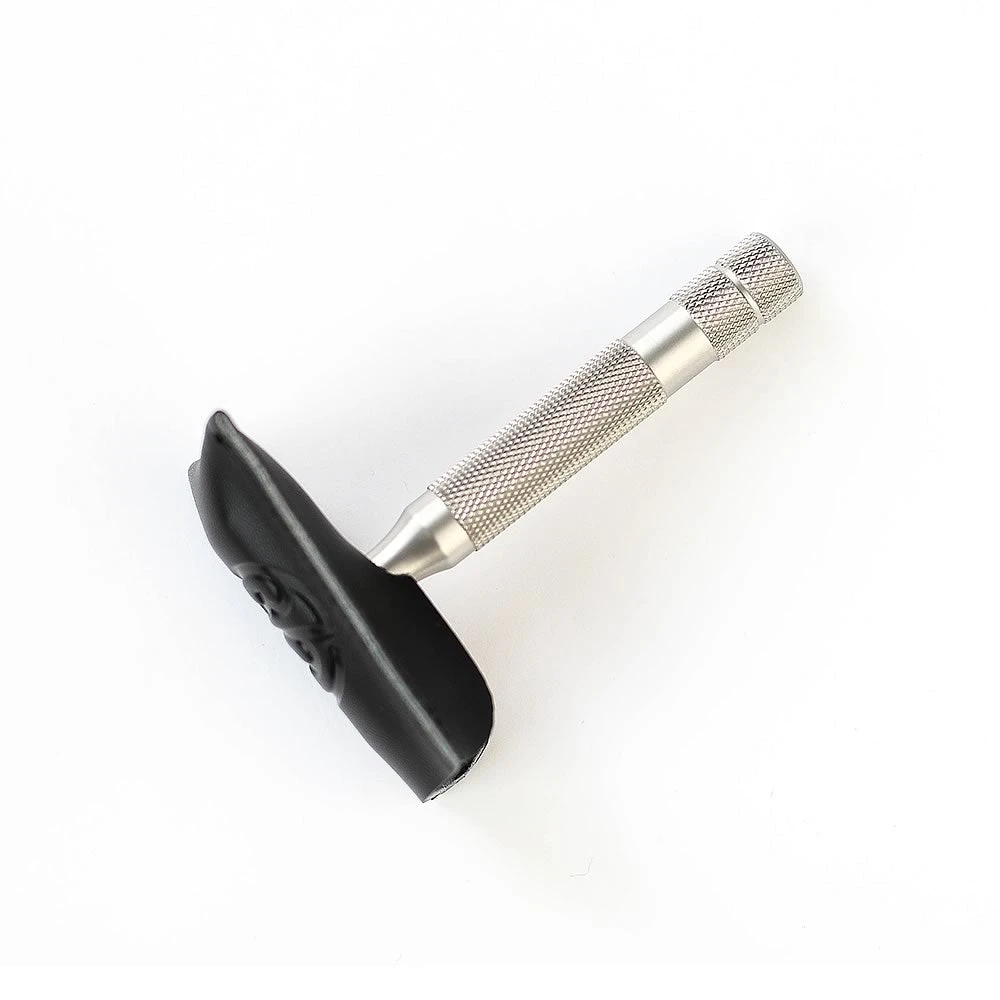 The Rockwell Genuine Leather Razor Sheath is an essential travel accessory for your double-edge safety razor, covering the blade securely to keep both your blade and your fingers safe. This leather sheath fits all Rockwell razors, as well as most other double-edge safety razors.