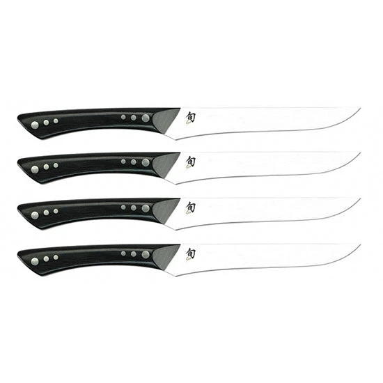 The Shun Shima 4-Piece Steak Knife Set is the perfect answer to the perfectly grilled steak. The incredibly sharp, clean 16-degree edge of the Shun Shima Steak Knife glides easily through even the toughest meat, keeping flavor where it belongs. This steak knife is not serrated, and can be sharpened to perform like new even after years of use.