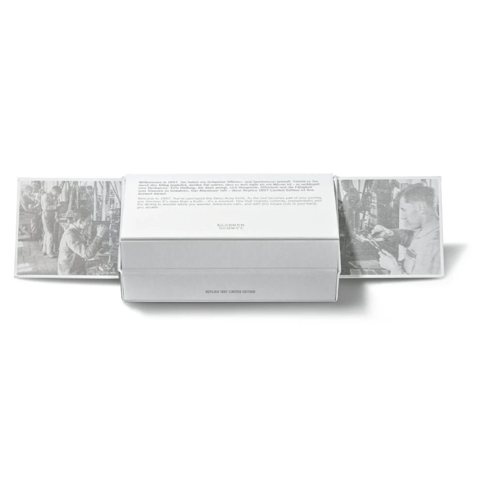 To honor this origin story, the Replica 1897 is packaged in a Victorinox-red eye-catching “time capsule” housed in a distinctive box printed with the knife’s story.